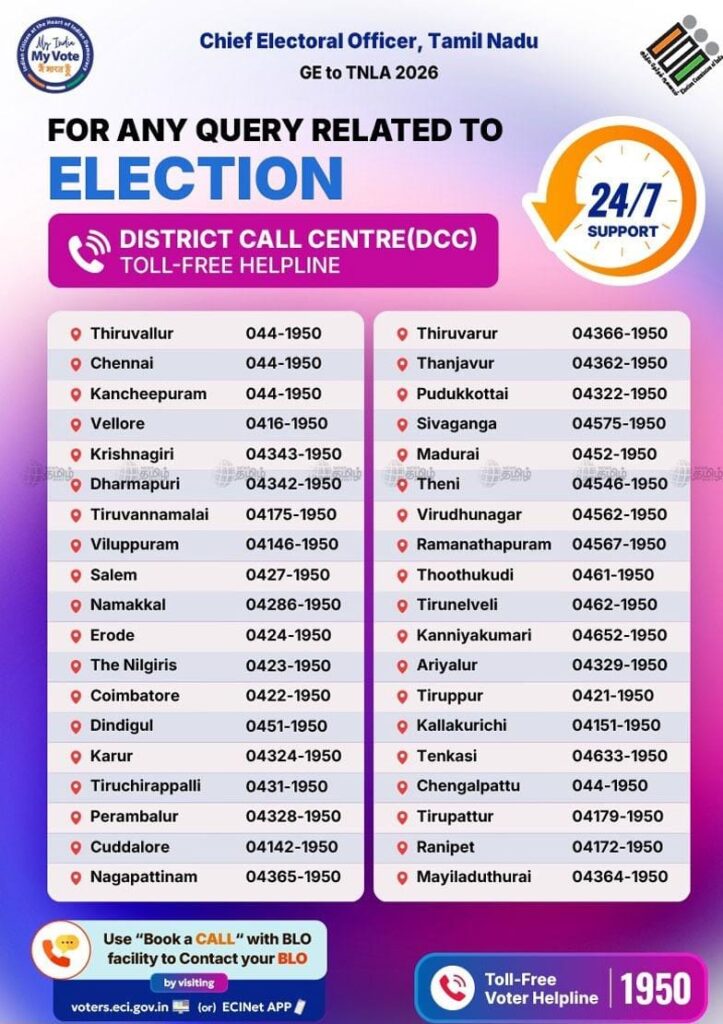 | தேசிய வாக்காளர் உதவி எண் | 1950 (Toll-Free) |