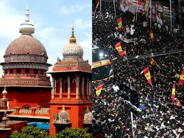 “சென்னை உயர் நீதிமன்றம், புதிய வழிகாட்டுதல்கள் வரும்வரை எந்த அரசியல் கட்சிகளுக்கும் ரோடு ஷோ நடத்த அனுமதி வழங்காது என தீர்ப்பு வழங்கியது; அதிமுக இடை மனு தாக்கல் செய்துள்ளது.”